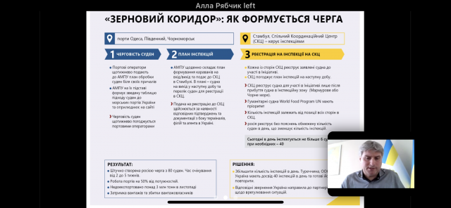 Доктор економічних наук, бізнес консультант Галина Яківна Студінська розкрила головні аспекти соціального маркетингу та наголосила на актуальності волонтерства в сучасних реаліях. Кандидат економічних наук, начальник ФДУ «Дніпровський район Держгідрографії» Іван Юрійович Чернявський зосередився на особливостях експорту агропродукції в період воєнного стану 2022 р., рішеннях та результатах впровадження «зернового коридору», а також проблемах логістичного забезпечення в цілому.
