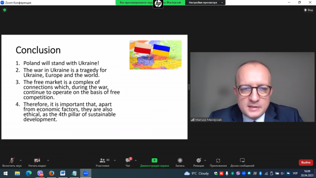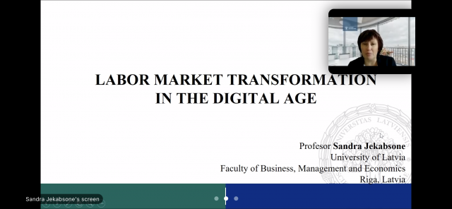 Доктор економічних наук, професор (University of Security Management in Košice, Словаччина) Ігор Геннадійович Брітченко звернув увагу на продовольчу безпеку України в світлі останніх заборон експорту української сільськогосподарської продукції. Prof. Sandra Jekabsone (University of Latvia, Latvia) зупинилась на актуальних проблемах ринку праці в цифрову епоху.