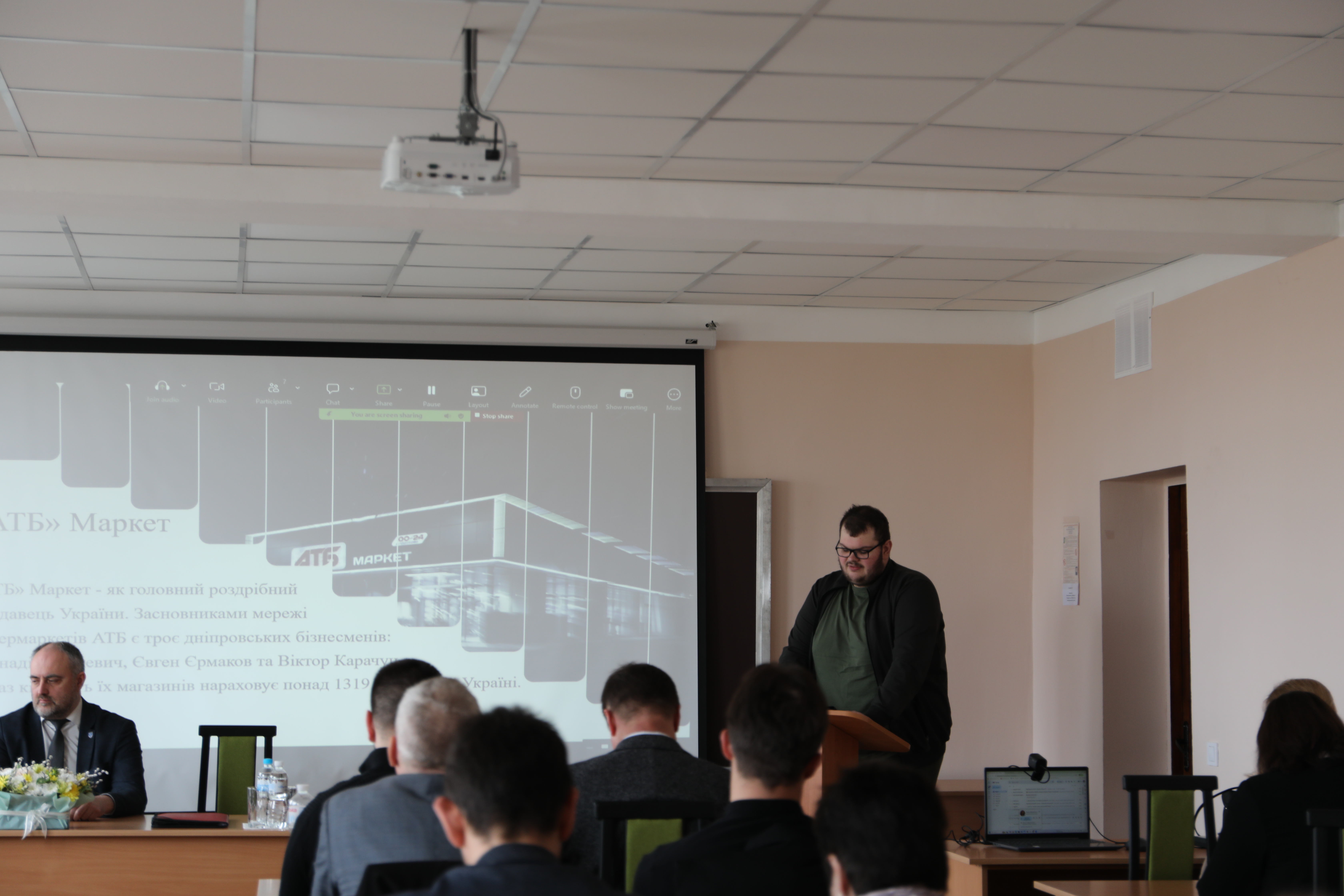 Нікіта АЗАРОВ, здобувач ІІ (освітньо-професійного) рівня вищої освіти за спеціальністю «Торгівля», представив доповідь на тему: «Принципи проєктування підвищення економічної ефективності підприємств роздрібної торгівлі» (науковий керівник – к.е.н., доцент Сергій НІКІТЧЕНКО).