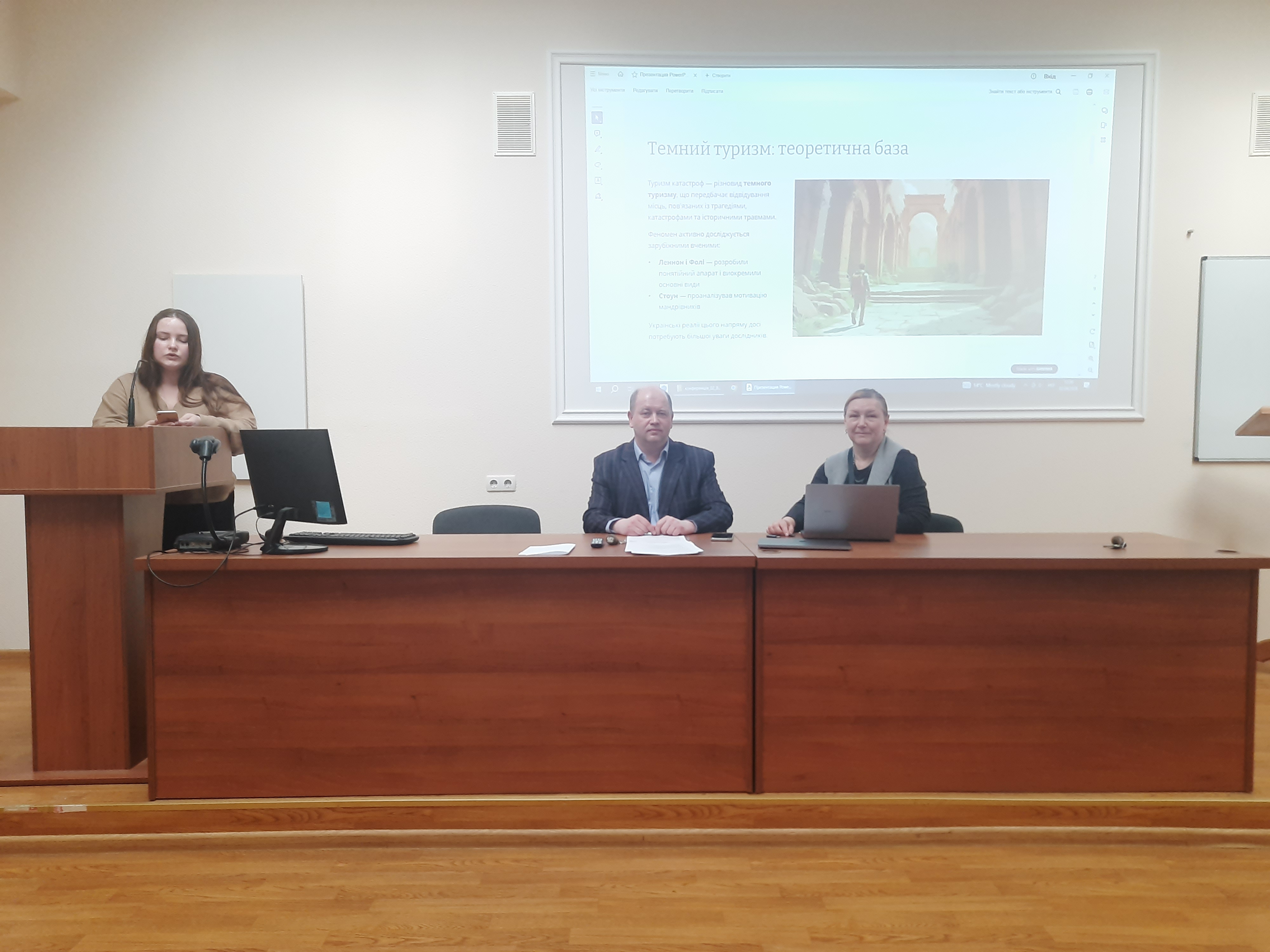 Дар’я НЕЧИПОРЕНКО, здобувачка ІІ (освітньо-професійного) рівня вищої освіти за спеціальністю «Туризм та рекреація», детально висвітлила тему: «Бренд-менеджмент готелю в умовах політичної та економічної нестабільності» (науковий керівник – к.е.н, доцент Лариса ГОПКАЛО).