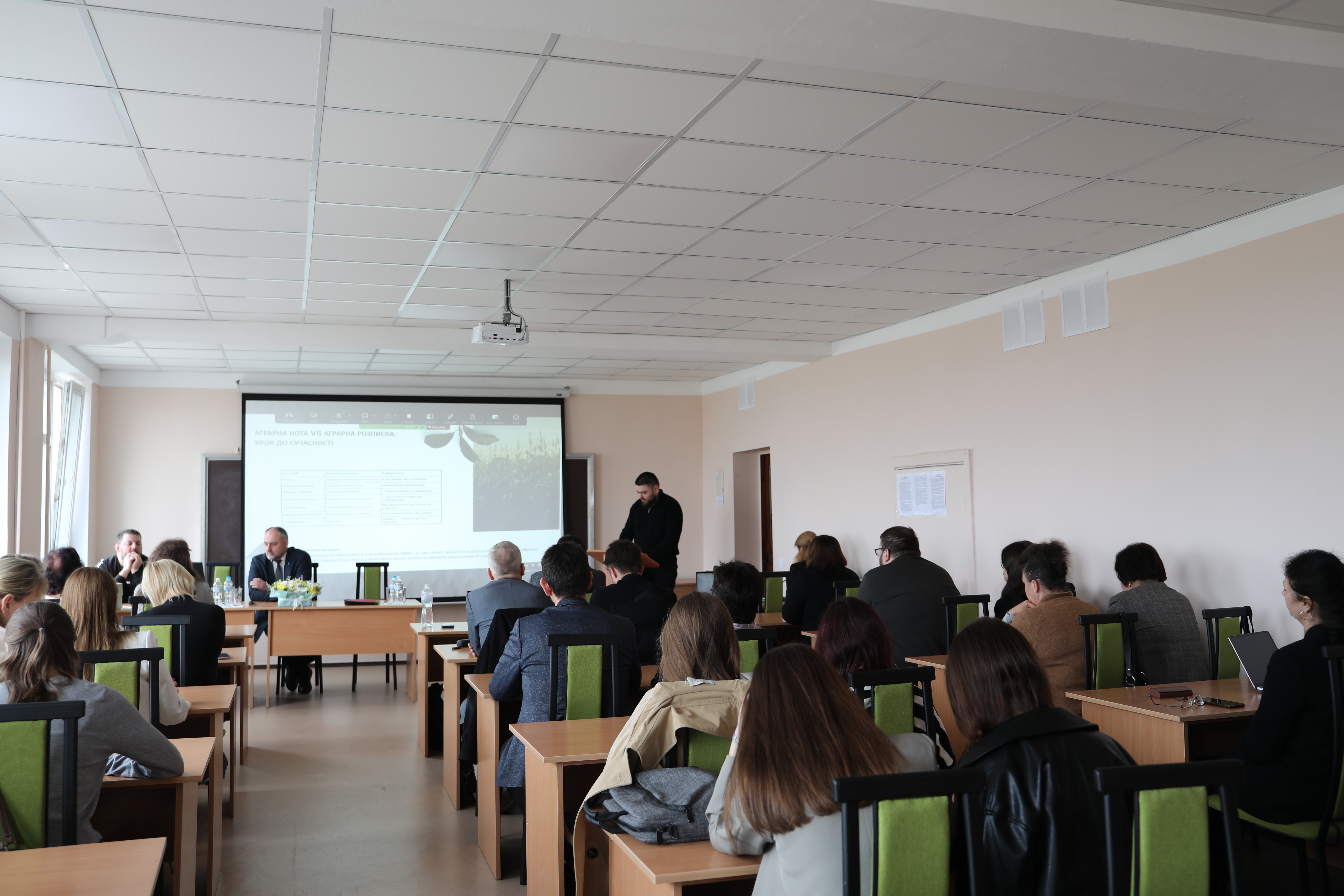Євген КОЗЛОВСЬКИЙ, здобувач ІІІ (освітньо-наукового) рівня вищої освіти за спеціальністю «Фінанси, банківська справа, страхування та фондовий ринок», презентував результати наукових досліджень на тему: «Аграрні ноти як інноваційний фінансовий інструмент аграрного сектору України в умовах євроінтеграції» (науковий керівник – д.е.н., професор Наталія ШВЕЦЬ).