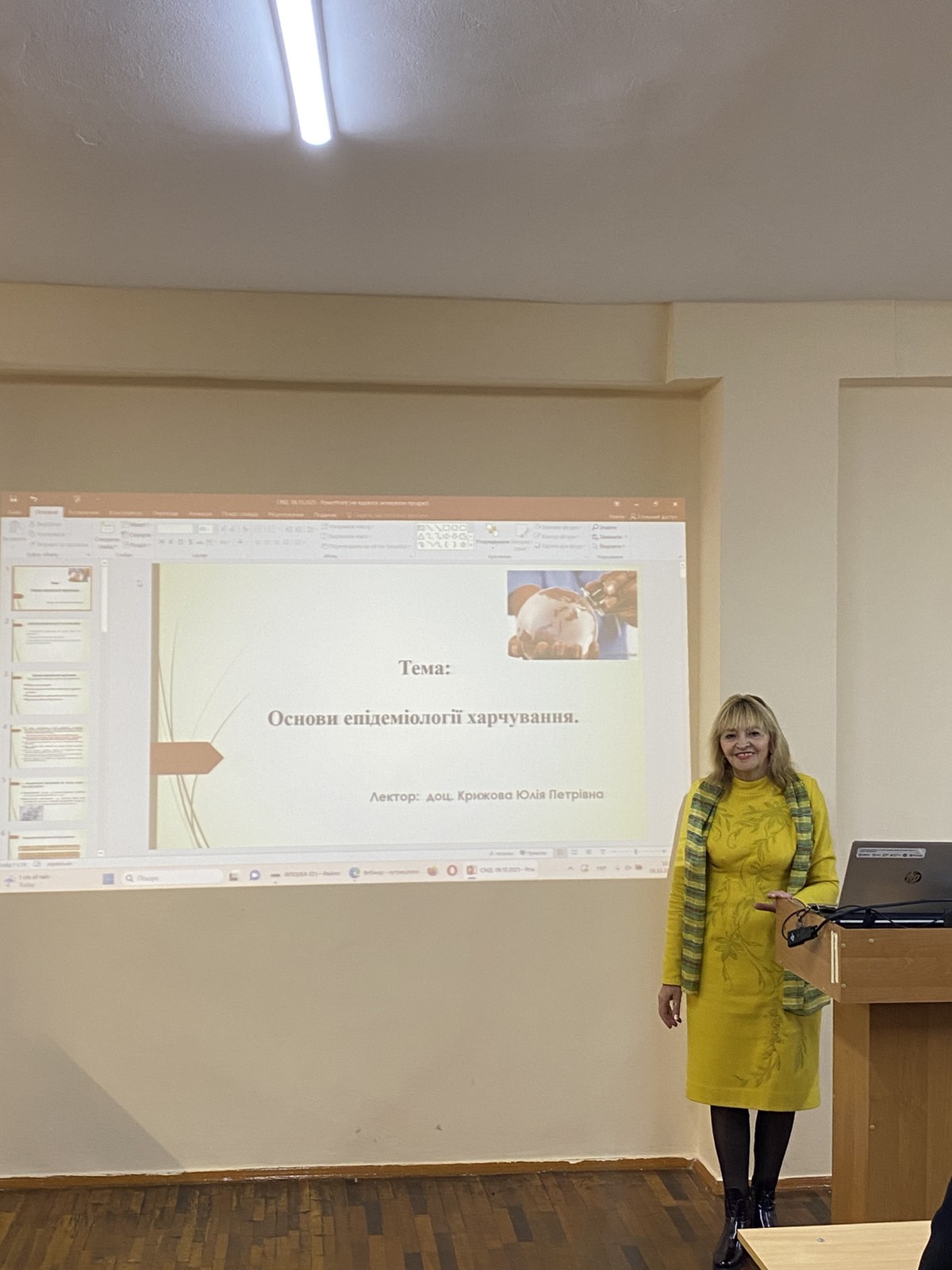 В рамках дисципліни «Сучасні методи досліджень» за освітньо-науковою програмою «Нутриціологія» для магістрів 2 року навчання доцентом кафедри технології м’ясних, рибних та морепродуктів Юлією Крижовою була проведена лекція на тему: «Основи епідеміології харчування».