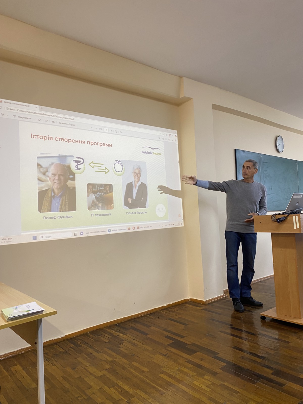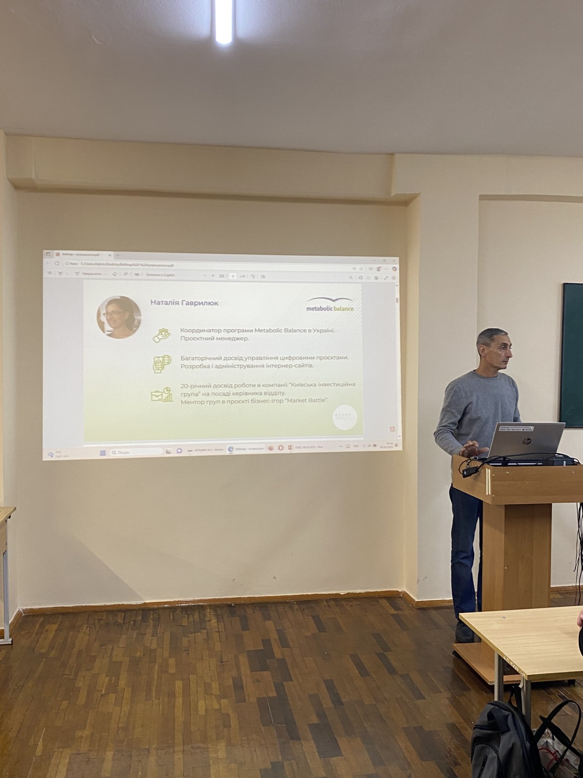 Тематика лекції відповідала темі запрошеного до заняття члена Ради роботодавців Володимира Гаврилюка «Інновації від роботодавців: Metabolic Balance - сучасна високотехнологічна програма для подолання метаболічних проблем», який має більше 40 років медичної практики, є консультантом компанії Metabolic Balance, викладачем Академії Metabolic Balance, лікар вищої категорії, імунолог, санолог, дієтолог, капітан медичної служби ЗСУ.
