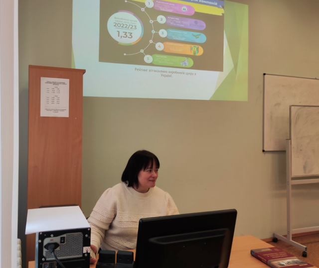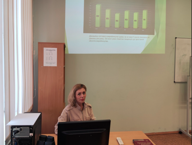 к.ф-м.н., доц. Тетяна Валеріївна Коваль виступила з доповіддю на тему “Моделювання ринку олійних культур в умовах військових дій”, де було висвітлено вплив геополітичних факторів на ринок сільськогосподарських продуктів і можливі моделі прогнозування ситуації на ринку олійних культур в умовах війни.