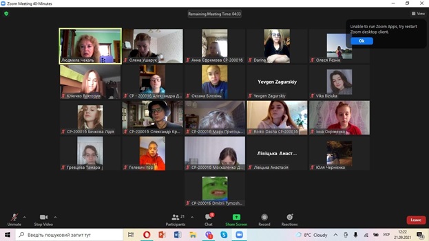 Використовуючи можливість максимальної кількості аудиторних занять у серпні – вересні цього навчального року, студенти отримали нагоду опрацювати різні інноваційні технології у спілкуванні в навчальному процесі. Йдеться і про «Сократичний діалог» на заняттях: кожний виступ студента вже не був формальним переказом, або навіть зачитуванням, матеріалу ( як це здебільшого відбувається в дистанційному режимі занять). Майже уся група активно залучається до дискурсу в процесі доповіді, вербалізуючи особистий досвід, власні переживання й усвідомлення певних колізій, обставин та вчинків людей. І це подається з позицій емоційного інтелекту, відверто і щиро.