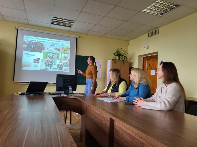 Аліна ГЛІМБОЦЬКА представила роботу на тему «Формування прибутку підприємств в умовах зміни споживчих вподобань» (на прикладі ТОВ «АТБ-маркет»), керівник к.е.н., доц. Людмила СТЕПАСЮК.