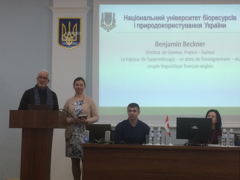 Привітав учасників конференції і директор асоціації «Французька без кордонів» Бенджамін Бекер (Франція), який виступив з цікавою і пізнавальною доповіддю щодо французьких запозичень в англійській мові і навпаки англійських у французькій. Бенджамен Бекер закликав студентів до вивчення іноземних мов і висловив сподівання, що у майбутньому Україна стане частиною Європейського союзу і знання мов допоможуть студентам стати конкурентноздатними на ринку праці.