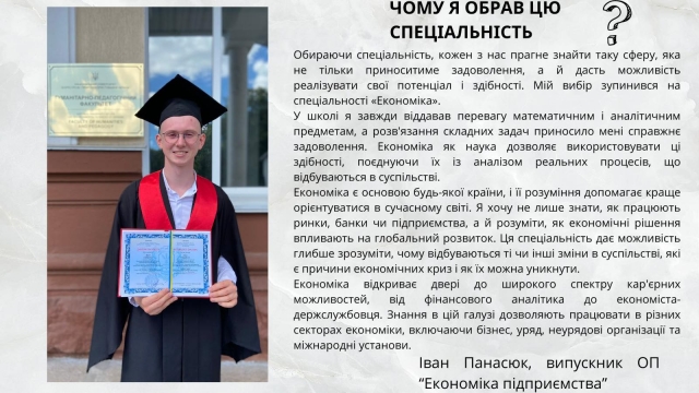 Іван Панасюк, у рубриці "Розмови з випускниками ОП Економіка підприємства", розповів чому обрав спеціальність "Економіка" чт, 1 сер 2024 - 03:00