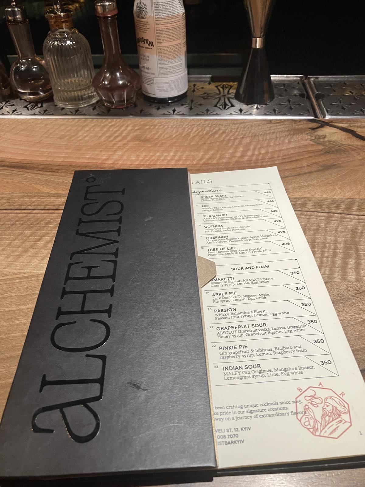 У межах вивчення дисципліни «Технологія напоїв» на кафедрі готельно-ресторанної справи та туризму економічного факультету для здобувачів вищої освіти спеціальності J2 «Готельно-ресторанна справа та кейтеринг» Національного університету біоресурсів і природокористування України було проведено виїзне практичне заняття на базі одного з сучасних барів столиці — «Alchemist».