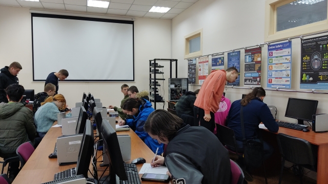 В аудиторії 224 - "Навчальний кіберполігон" - студентами 3 курсу спеціальності "Кібербезпека" Володимир ОКУЛІЧ, Ярослав БОНДАР, Денис НЄВРОВ, Максим РЕШЕТНИК (під керівництвом доцента Андрія САГУНА) було проведено майстер-клас з питань захисту інформації, кодування та декодування, криптології, технічних засобів кібербезпеки тощо. На завершення абітурієнтам запропонували конкурс - спробувати власними силами закодувати текст, а також декодувати предствлений зашифрований код.