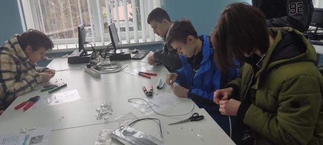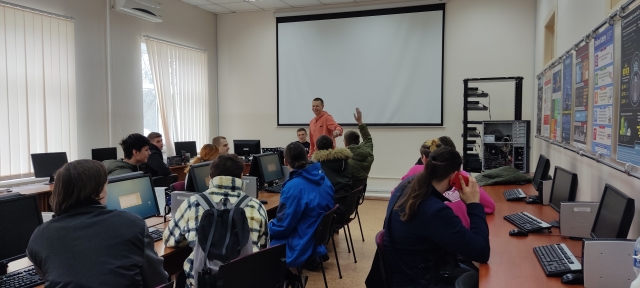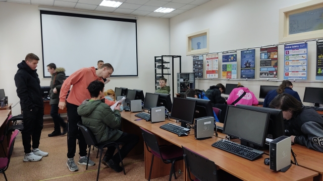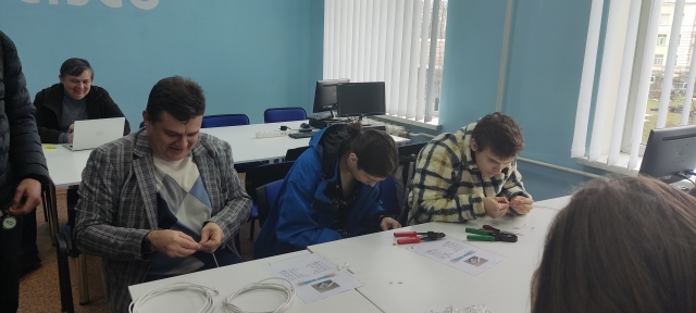 В аудиторії 223 - "Мережева академія CISCO" група абітурієнтів, які зацікавились адмініструванням компютерних мереж прослухали майстер-клас від завідувача кафедри Дмитра КАСАТКІНА про сучасні мережі. Охочі прийняли участь у конкурсі по створенню патч-кордів власними руками.