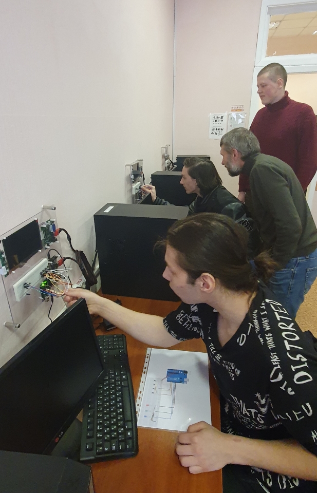 У 211 аудиторії - "Навчальна лабораторія інтернет-речей" майстер клас проводили доцент кафедри Віктор СМОЛІЙ та студент 2 курсу спеціальності "Комп'ютерна інженерія" - Володимир ЯКОВЕНКО. Вони представили гостям прості і складні моделі використання мікроконтролерів при створенні комп'ютерних систем розумного будинку або розумного-міста. Абітурієнти прийняли участь у конкурсі на створення власної компютерно-інженерної розробки на базі мікрокотролера Ардуіно.