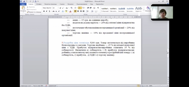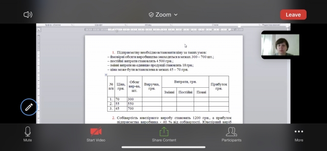 На 4 парі було проведено консультацію з дисципліни «Маркетингова цінова політика» доцентом кафедри маркетингу та міжнародної торгівлі Барилович Оленою Михайлівною. На консультації було розглянуто питання, які стосуються видів цінової політики та цінових стратегій, розв’язували задачі щодо структури ціни, точки беззбитковості та ковзної ціни.