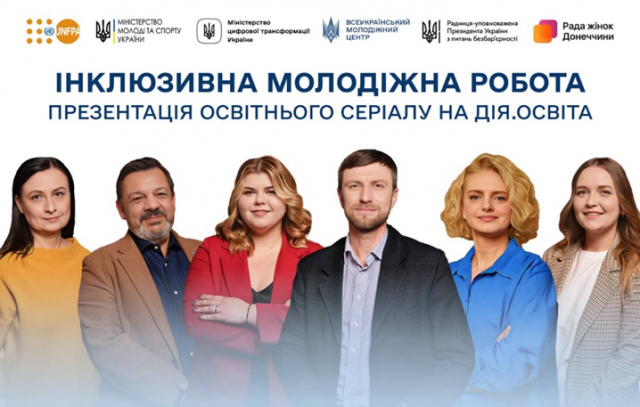 Освітній серіал «Інклюзивна молодіжна робота» створено громадською організацією «Рада жінок Донеччини» за фінансування та у межах гуманітарного реагування UNFPA, Фонду ООН у галузі народонаселення спільно з Регіональним офісом UNFPA у Східній Європі та Центральній Азії, Міністерством молоді та спорту України, Міністерством цифрової трансформації України та радницею-уповноваженою Президента України з питань безбар’єрності для Дія.Освіта.