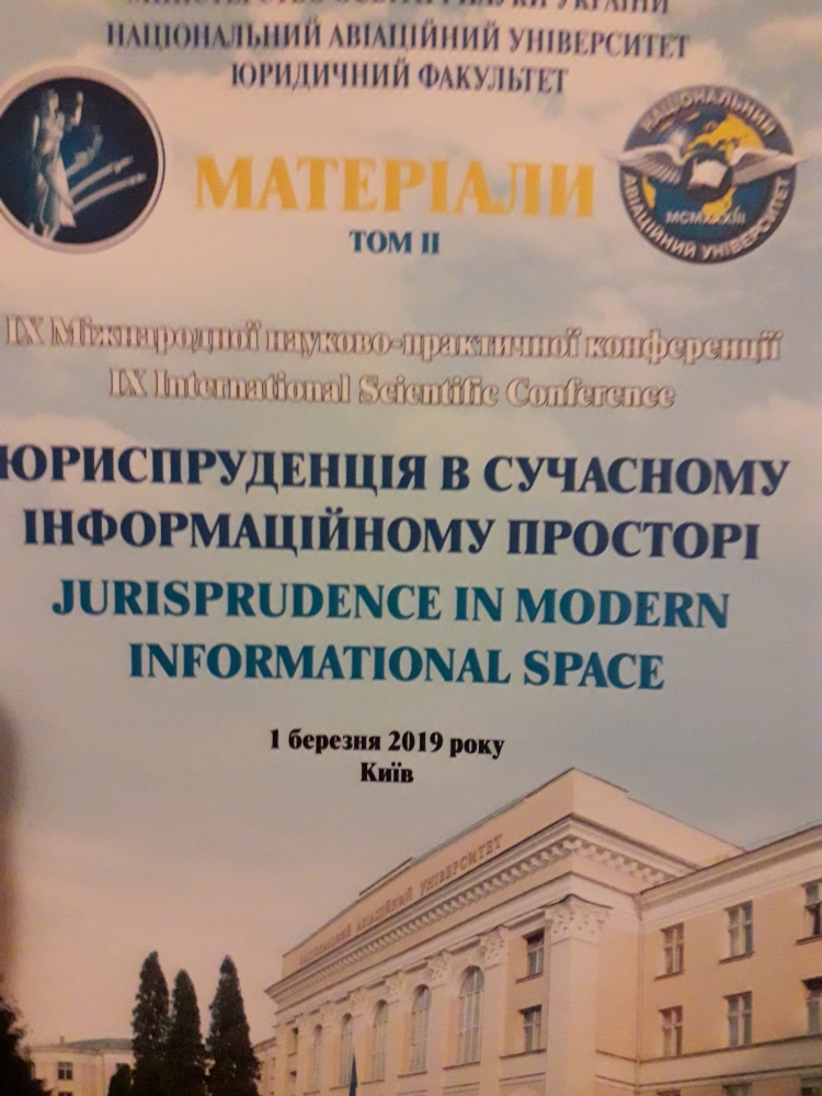 1 березня 2019 року в Національному авіаційному університеті за участю провідних вітчизняних та зарубіжних фахівців у сфері права - вчених, дипломатичних структур, державних та громадських діячів, керівників та фахівців юридичних установ, суддів відбулася ІХ Міжнародна науково-практична конференція «Юриспруденція в сучасному інформаційному просторі».