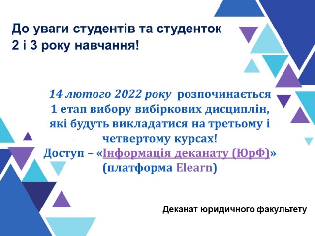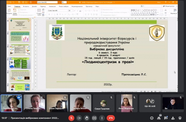 Студентам наголосили на тому, що і у весняному навчальному семестрі 2022/2023 вони також мають право обрати "Людиноцентризм в праві" (Людмила Протосвіцька), "Правова соціологія" (Віра Качур), "Правове письмо та документування" (Світлана Авраменко).