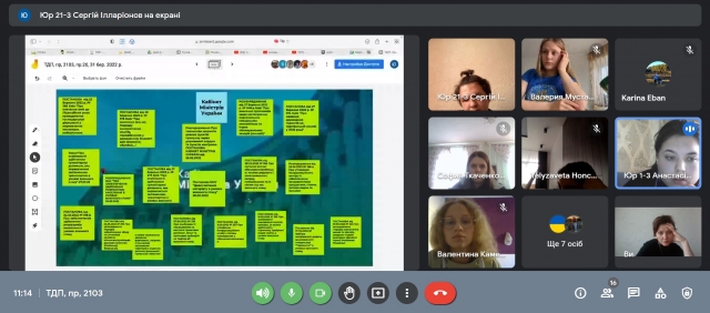 З першого ж тижня значна увага була приділена виховній роботі. Були проведені зустрічі кураторів зі студентами. Так, Світлана Авраменко зазначила, що студентів групи 2001 війна розкидала по різним містам. На жаль, більшості довелося покинути свій дім, дехто наразарі перебуває в окупації. Не зважаючи на всі труднощі, майбутні юристи в міру можливостей продовжують навчання. Щодо групи Прав-2005, то наставниця Віра Качур зустрілася з ним 21 березня 2022 р. та обговорила нагальні питання щодо навчального процесу в теперішніх умовах. На початку зустрічі оговорили питання безпеки, можливості навчання та зворотного зв’язку. Потому перейшли до таких моментів: 1) ознайомилися з головними положеннями наказу ректора від 18.03.2022 р. №160 щодо завершення другого семестру 2021/2022 навчального року; 2) зупинилися на головних моментах організації начальної практики; 3) зупинилися на необхідності завершити процес формування вибіркової складової на 2022/2023 навчальний рік до 10 квітня 2022 р. Схожі зустрічі були проведені і Людмилою Протосавіцькю, Оленою Чомахашвілі, Іриною Єрмоленко.