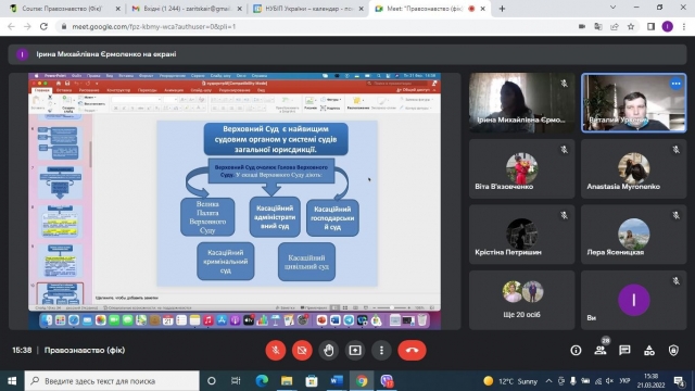 22 березня 2022 р. було проведено засідання кафедри, на якому заслухали стан успішності та дисципліни студентів денної форми навчання неюридичних факультетів, виконання плану профорієнтаційної роботи кафедри теорії та історії держави і права на 2021/2022 навчальний рік, зупинилася на обговоренні наказу ректора від 18 березня 2022 р. №160, забезпеченні участі студентів 2 і 3 курсу юридичного факультету у формуванні вибіркової складової на 2022/2023 навчальний рік. У лютому студенти 1 і 3 курсів юридичного факультету все таки пройшли оцінювання залишкових знань студентів. При проведенні профорієнтаційної роботи активно залучаються студенти юридичного факультету (детальніше тут).