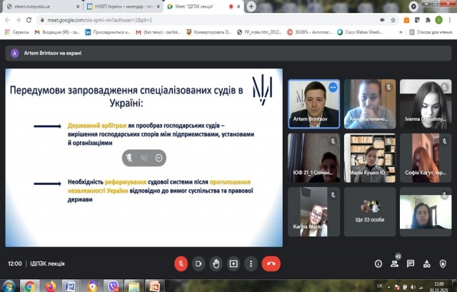 Поєднання теоретичних та набуття практичних знань завжди було запорукою успішного засвоєння лекційного матеріалу. Отож, для першокурсників юридичного факультету доценткою кафедри Іриною Єрмоленко була організована зустріч з Артемом Брінцовим, кандидатом юридичних наук, начальником відділу правового забезпечення Вищого антикорупційного суду.