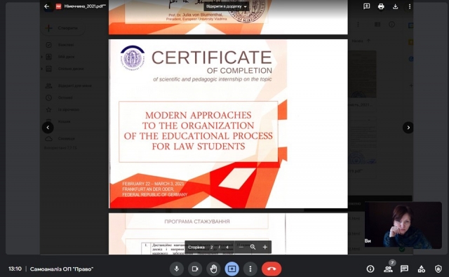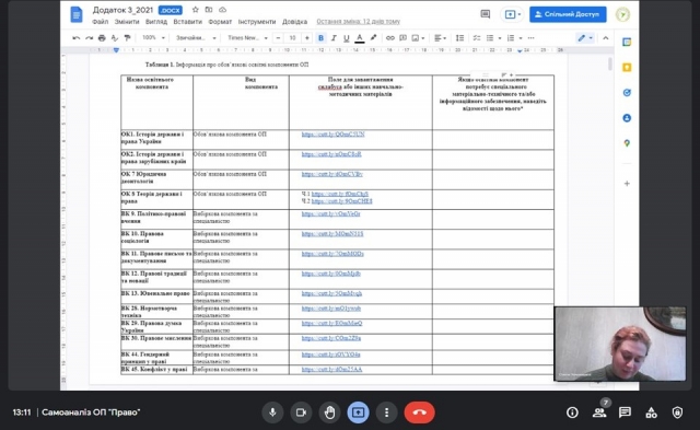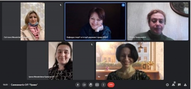 Впродовж січня – першої половини лютого 2022 р. науково-педагогічні працівники кафедри теорії та історії держави і права провели низку онлайн-зустрічей щодо аналізу ОП «Право» для першого (бакалаврського) та другого (магістерського) рівнів вищої освіти.