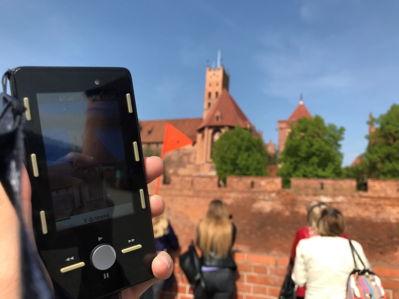 В дорозі ми були 2 години. Дорогою на вразили краєвиди, які відкриваються при переїзді через річку Ногат. Коли ми прибули до замку, нам запропонували аудіогід. Це дуже зручно. Аудіогід російською мовою розповідає про все, що вас оточує, оскільки завдяки GPS або Wi-Fi «знає» де саме ви знаходитеся і поруч з чим стоїте.