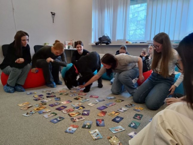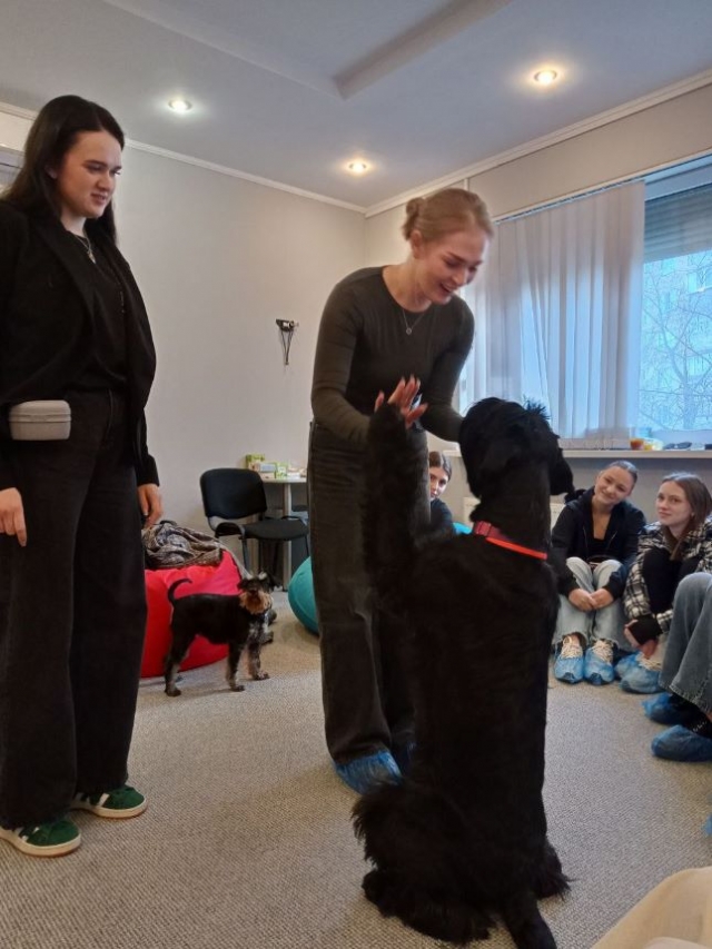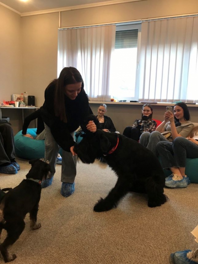 Соціальна значущість діяльності психолога висуває низку вимог до якості його професійної підготовки, зокрема, формування компетентностей особистісного розвитку та особистісної терапії. Максимальна чутливість до себе, розуміння своїх потреб, емоцій і переживань, усвідомлення минулого травмуючого досвіду й патернів поведінки є важливими компонентами в житті кожної людини й потребують психологічних інтервенцій. З цією метою, здобувачі вищої освіти спеціальності Психологія та доценти кафедри психології Лариса АФАНАСЕНКО й Оксана ОЛІЙНИК у межах кафедрального проєкту «School of Practical Psychology» і «Клубу самопізнання та саморозвитку «Вutterfly» долучились до групового терапевтичного сеансу в Центрі каністерапії «InNikos». Учасників групи радо зустріли досвідчені фахівці: психологиня Центру каністерапії Анна ЧАСОВНИКОВА, кінологиня Дар’я РЕЗНІЧЕНКО та три собаки-терапевти: Варя, Фрея і терапевт-початківець Ніколь.