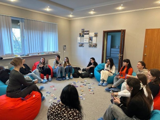 Груповий сеанс мав на меті віднайти особистісний ресурс для учасників та стабілізувати їх емоційний стан. Відтак, пані Анна провела техніку з використанням метафоричних асоціативних карт, яка дозволила кожному із присутніх віднайти власне джерело натхнення, ідеї та конкретні кроки за допомогою яких можна досягти взаєморозуміння у відносинах, рішення певної життєвої ситуації та самопідтримки.