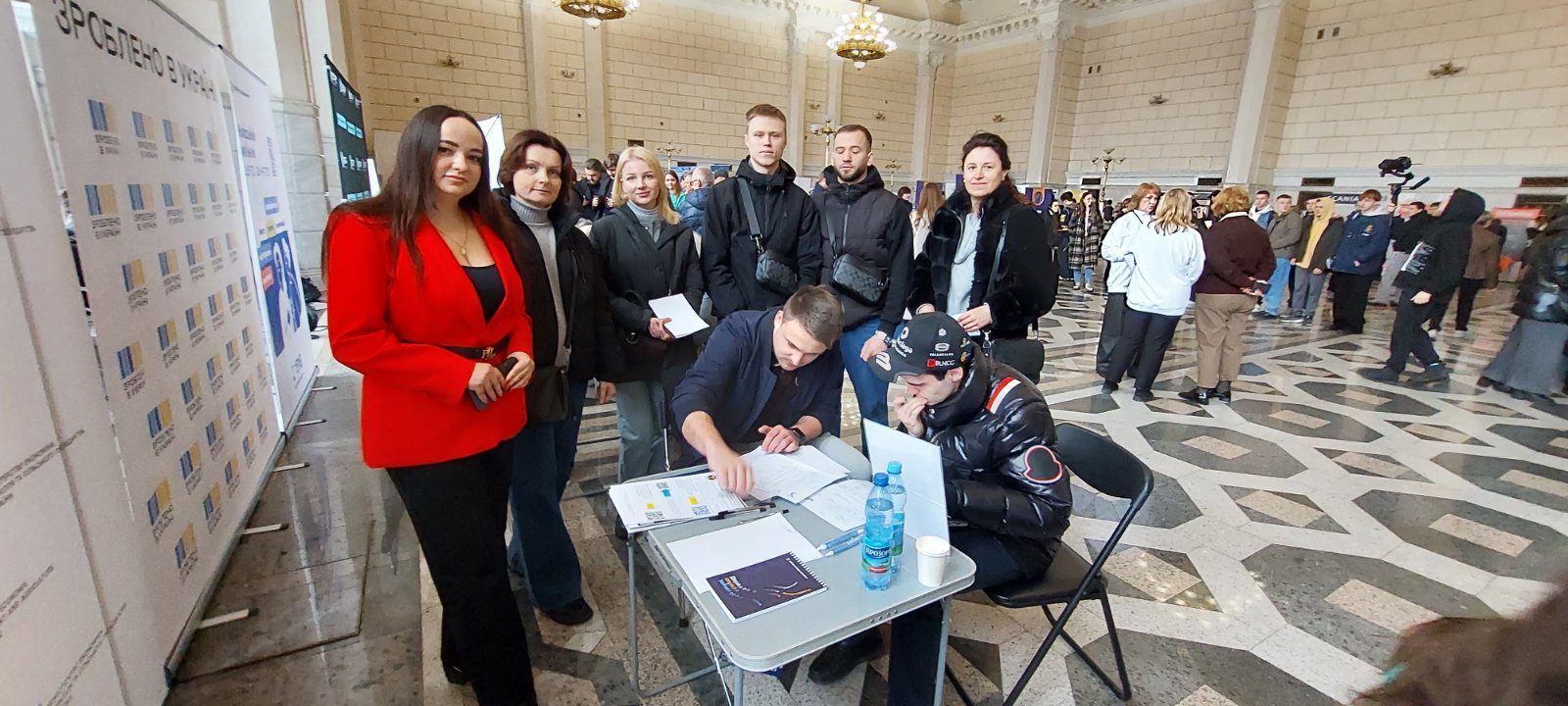 9 квітня 2026 року студенти юридичного факультету - магістри першого року навчання у межах вивчення курсу «Казуїстика трудового права» взяли участь у масштабному кар’єрному заході - ярмарку вакансій «Простір кар’єрних рішень», що відбувся на Центральному залізничному вокзалі м. Києва. Захід було організовано Київським міським центром зайнятості спільно з АТ «Укрзалізниця».