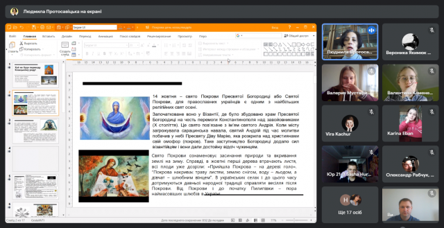 Захід було проведено онлайн. Говорили про походження Свята Покорови Пресвятої Богородиці, козацької Покрови та Дня захисників України.
