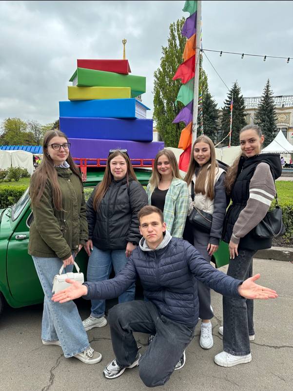 Навчання навчанням, але час для прогулянок та відпочинку теж вкрай необхідно мати. Заняття це добре, але неформальне спілкування з куратором на свіжому повітрі- це також весело! Особливо зараз, коли квітують бузок, нарциси та сакура, та просто неможливо всидіти в аудиторії. Тому група 22002б спеціальності Філологія (англійська) вирішила не прогавити можливість подивитися на фоліанти самих різних українських видавництв, що зараз представлені на книжковому ярмарку, якbй проходить на території ВДНГ. Дуже тішить, що сучасна молодь любить читати, та читати саме паперові видання! Адже ніщо електронне не замінить справжню книгу, її аромат та шелест сторінок. Додому пішли без покупок, проте з яскравими враженнями - величезний фонтан, який так рідко працює, яблуневий сад у білому вбранні, лебеді у озера, і ще багато чого цікавого.