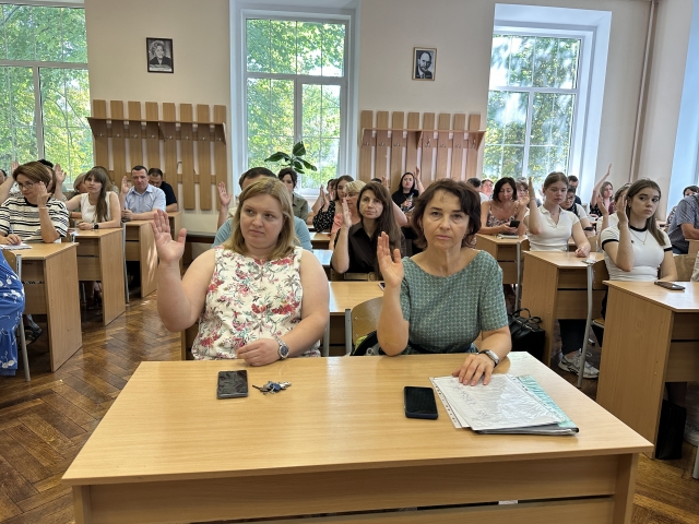4 вересня 2025 року за участі ректора Вадима ТКАЧУКА та начальника відділу кадрів Сергія ГРИЩЕНКА на факультеті захисту рослин, біотехнологій та екології відбулися позачергові збори трудового колективу.