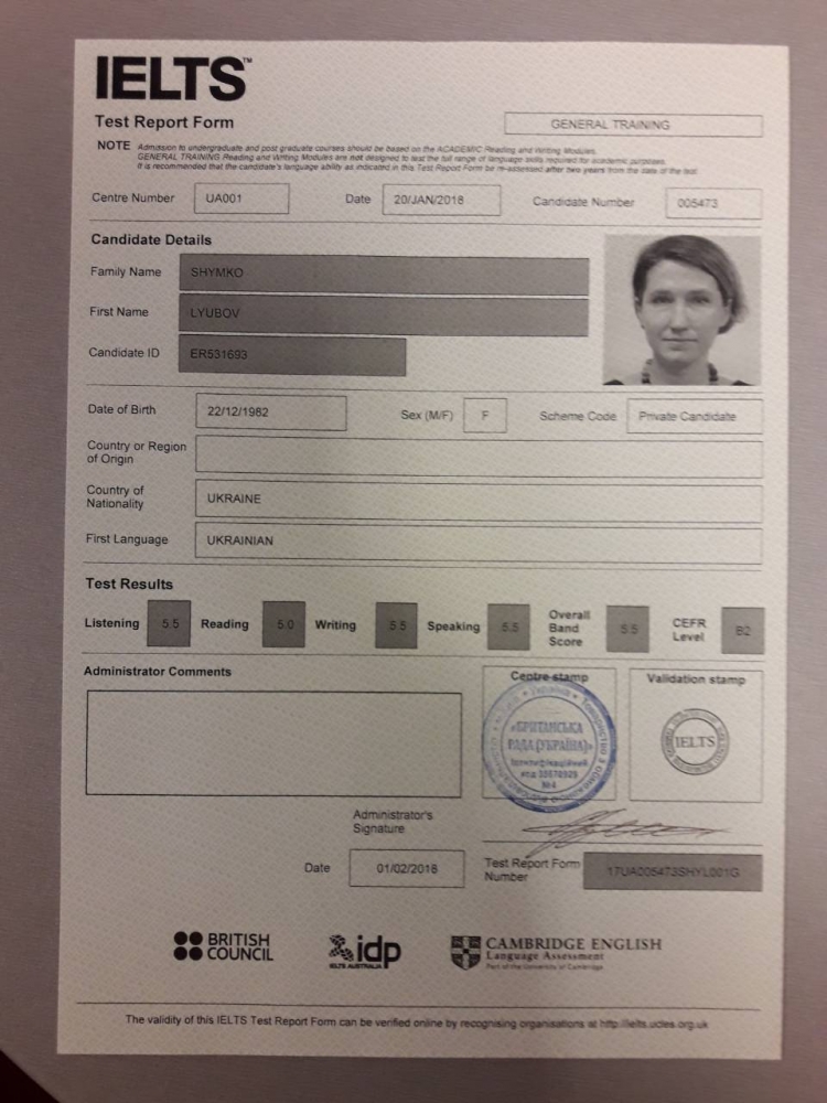 Щиро вітаємо Вас з отриманням сертифікату про знання іноземної мови на рівні В2.