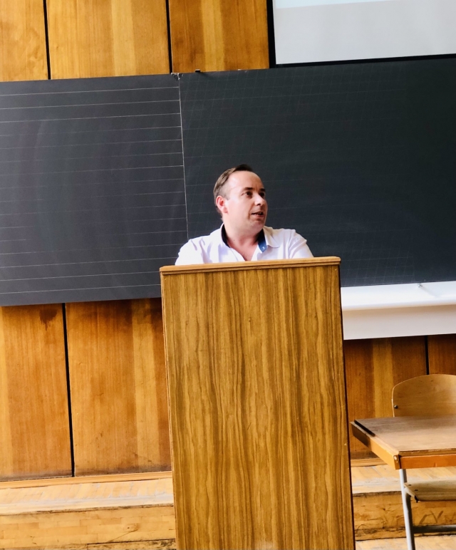 Заступник декана Ігор Сівак у своєму виступі зупинився на особливостях організації першого навчального семестру 2023-2024н.р. Освітній процес розпочинається в змішаному форматі: 14 серпня в очному форматі для студентів 1-2 курсів бакалаврату, для студентів 3-4 курсів та для магістрів 2 року навчання - в дистанційному форматі. 4 вересня розпочинається навчання в очному форматі для студентів 1 року навчання магістратури.