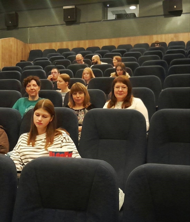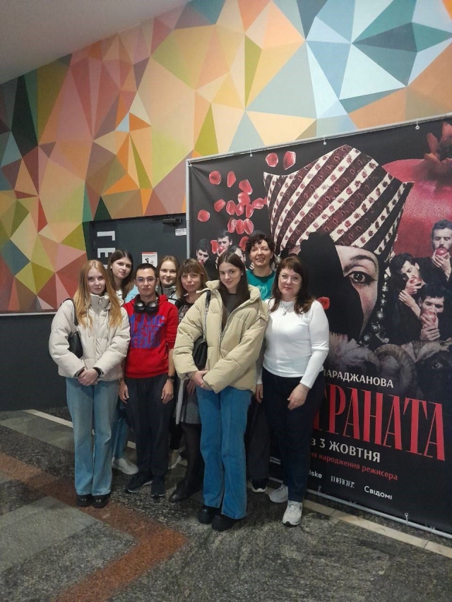 Журналісти-другокурсники, члени студентського науково-практично-світоглядного гуртка «МедіаТОР», разом із викладачами Світланою Василівною Харченко, Анною Анатоліївною Данько-Сліпцовою та Наталією Василівною Адамчук відвідали кінотеатр «Жовтень». Студенти вирішили піти на перегляд фільму «Колір граната», оскільки ця кінострічка – яскравий приклад аудіовізуального мистецтва, яке поєднує візуальні та звукові елементи.