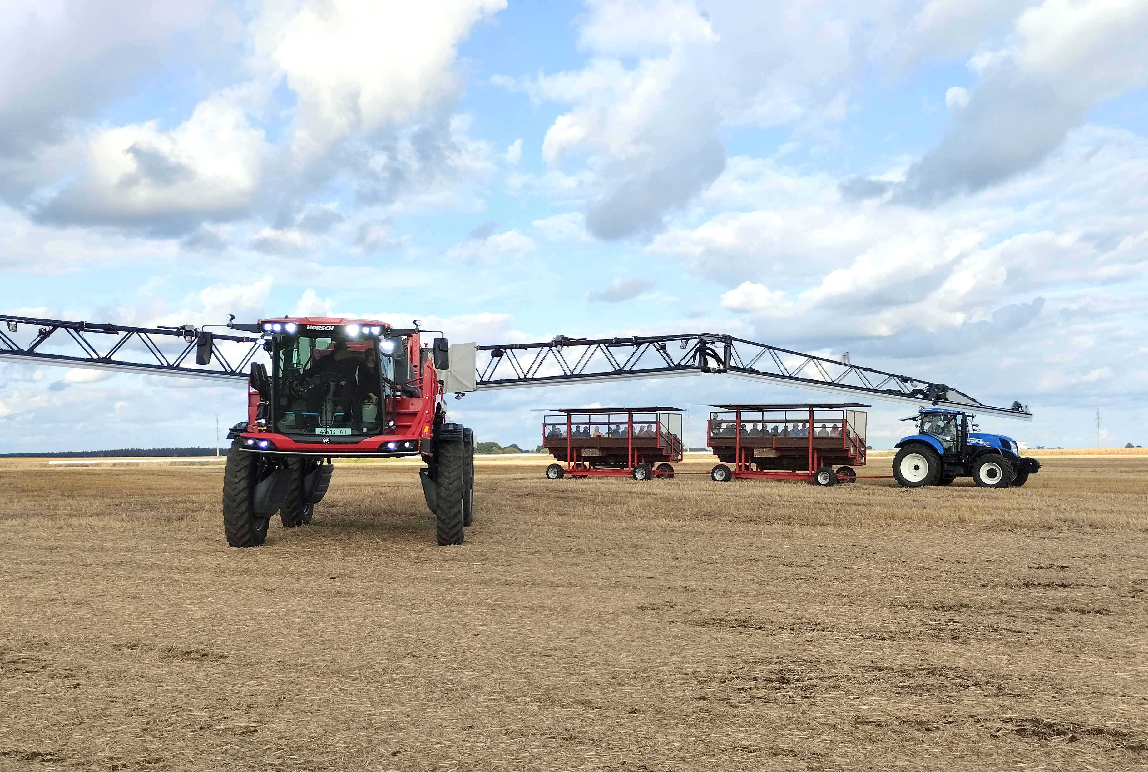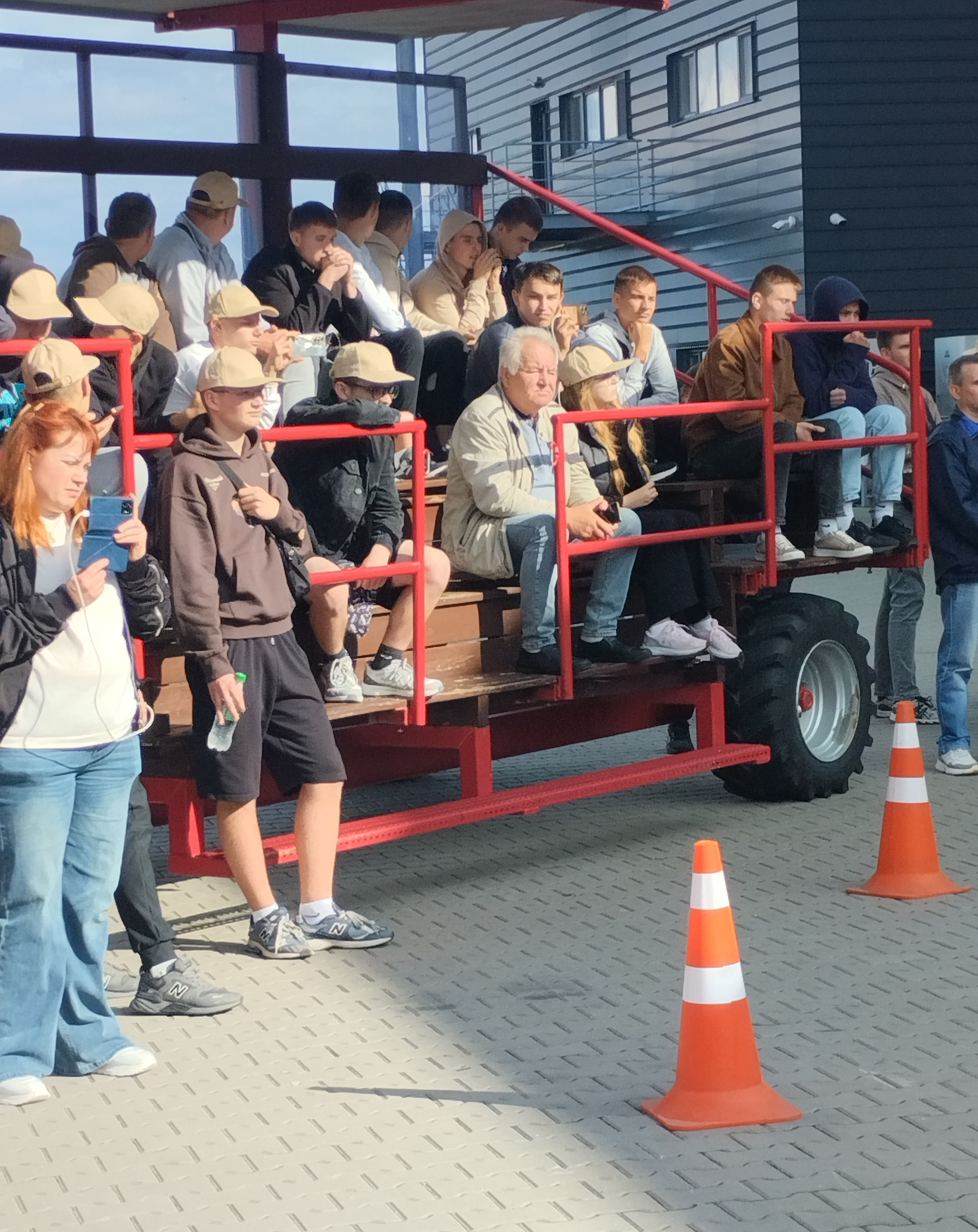 Найбільш видовищною частиною заходу стала польова демонстрація техніки. Глядачі розташовувалися на спеціальних пасажирських причепах, які трактор тягнув полем поруч із працюючими агрегатами. Це дало можливість учасникам із близької відстані спостерігати за роботою машин і відчути атмосферу реального виробничого процесу.