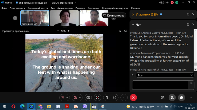Доповіді різнилися за своєю тематикою, адже всі вражали масштабністю та глибиною аналізу: від геоекономічного значення Асоціації держав Південно-Східної Азії (Мохд Фахім, Таїланд), міжкультурної комунікації в умовах викликів сьогодення (Маріо Пейс, Мальта), ролі ІКТ в професійній освіті (Аміт Кумар Гоель, Індія), лінгвістичної компетентності для бізнесу і права (Асма Фарук, Індія) до розробки освітньо-професійних програм підготовки магістрів із освітніх інноваційних технологій (Апірак Тохтайонг, Таїланд), необхідності трансформування освіти від набуття теоретичних знань до розвитку практичних умінь (Елені Джерокостопулу, Греція), творчості Франца Кафки в коміксах (Даніель Каліновскі, Польща), проблеми відтворення поняття «management» в україномовних документах (Петро Калита, Україна) тощо.