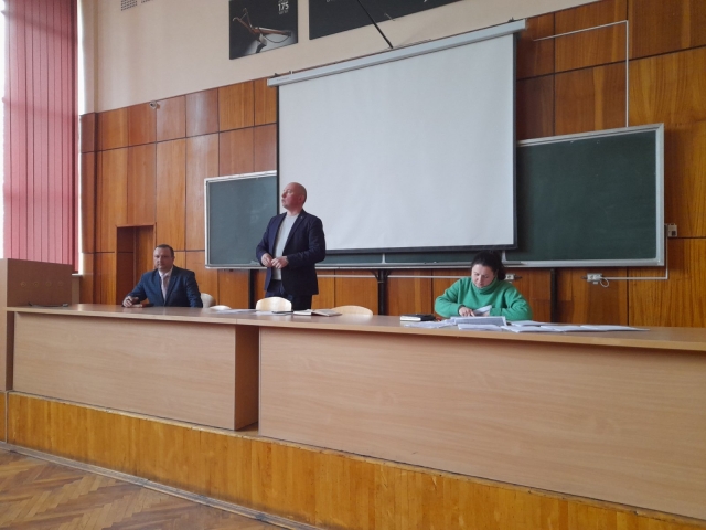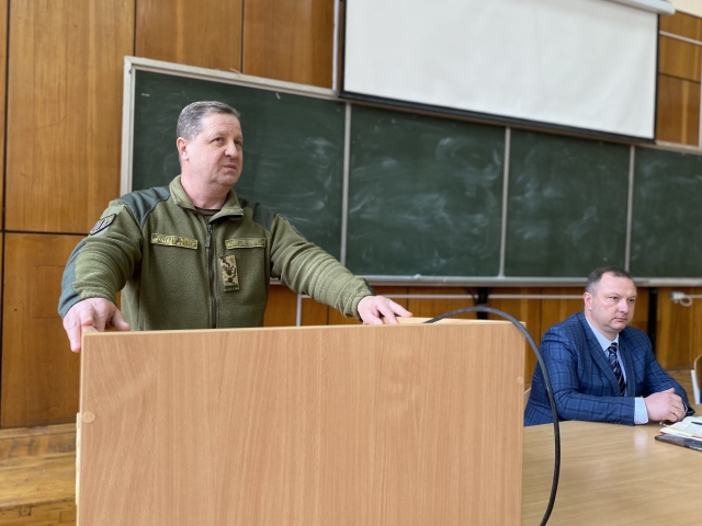 Гість зібрання, старший викладач кафедри військової підготовки, Ігор Безверхий, закликав студентів вступати до лав кафедри і здобувати військову освіту, яка у майбутньому знадобиться, для застосування, у будь яких силових структурах держави. Крім того, студенти повинні розвивати свій патріотичний дух і вміти боронити свою країну, що сьогодні дуже актуально.