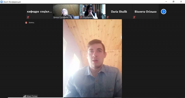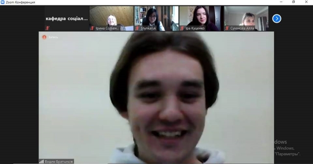 Кафедра соціальної роботи та реабілітації також пишається своїм цьогорічним випускником магістерської програми «Соціальна робота», а нині - головою Київської міської молодіжної ради Вадимом Братчиковим, який в якості почесного гостя привітав учасників конференції та запросив до лав очолюваної ним організації молодь, якій властиві такі риси: поінформованість, цілеспрямованість, нестандартність, комунікативність, енергійність. Вадим також провів онлайн експрес-опитування, в якому поцікавився двома ключовими питаннями: 1) Чи планує студентська молодь виїжджати за кордон для навчання чи продовження наукової діяльності? 2) Чи планує студентська молодь проводити спільні проекти з українськими колегами, якщо переїде жити за кордон? Відповіді були строкаті. Голова Київської міської молодіжної ради розповів, як співпрацювати з молодіжною радою та використовувати всі переваги. Наприклад, можна співпрацювати в рамках проєктів та різноманітних заходів та при цьому отримувати фінансування молодіжних проєктів.
