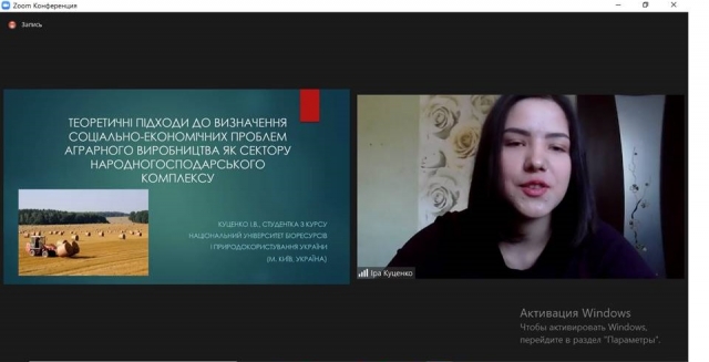 • Куценко Ірина, здобувачка першого (бакалаврського) рівня вищої освіти, спеціальності «Соціальна робота» розповіла про «Теоретичні підходи до визначення соціально-економічних проблем аграрного виробництва як сектора народногосподарського комплексу» (науковий керівник: Людмила Чекаль).