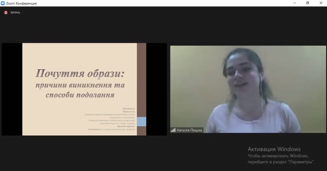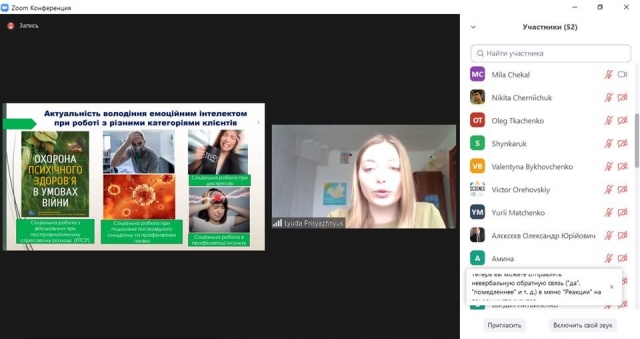 Присяжнюк Людмила, здобувачка першого (бакалаврського) рівня вищої освіти, спеціальності «Соціальна робота» виступила з доповіддю «Емоційний інтелект як чинник соціально-психологічної адаптації особистості» (науковий керівник: Олен