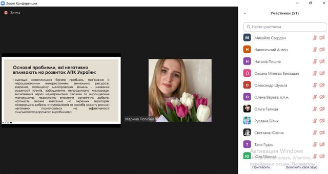 Студентка факультету аграрного менеджменту Побочій Марина розповіла про «Проблеми розвитку АПК України».
