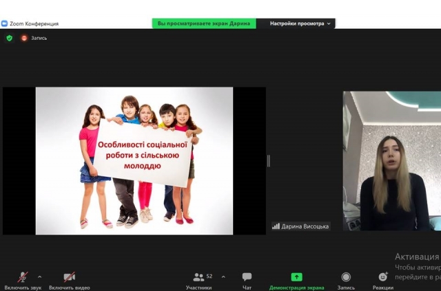 • Висоцька Дарина, здобувачка першого (бакалаврського) рівня вищої освіти, спеціальності «Соціальна робота», Національний педагогічний університет імені М.П.Драгоманова презентувала тему «Особливості соціальної роботи з сільською молоддю» (науковий керівник: Оксана Міхеєва);