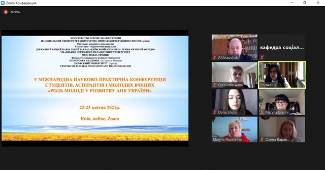 22 квітня 2021 року відбулась V міжнародна науково-практична конференція студентів, аспірантів і молодих вчених «Роль молоді у розвитку АПК України», організаторами якої є кафедра виробничого та інвестиційного менеджменту факультету аграрного менеджменту та кафедра соціальної роботи та реабілітації гуманітарно-педагогічного факультетту. Співорганізаторами конференції стали Поморська Академія (м. Слупськ, Польща), Хайфський університет (Ізраїль), Center for business innovation and transformation, Державний вищий навчальний заклад «Київський механіко - технологічний коледж», Уманський державний педагогічний університет імені Павла Тичини.