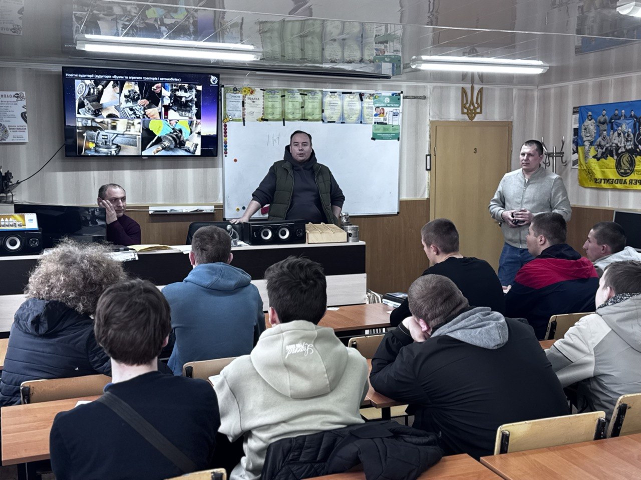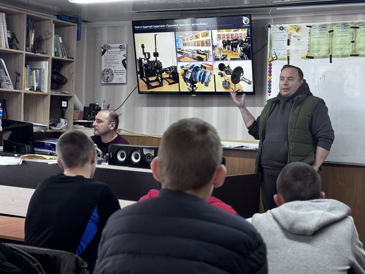 Продовженням візиту стала зустріч зі здобувачами освіти коледжу, під час якої було презентовано спеціальність J8 «Автомобільний транспорт», а також окреслено ключові переваги навчання в Національному університеті біоресурсів і природокористування України. Завідувач кафедри Євген КАЛІНІН представив комплексну характеристику освітнього середовища, зосередивши увагу на сучасній матеріально-технічній базі, інноваційних підходах до навчання та можливостях професійної реалізації випускників.