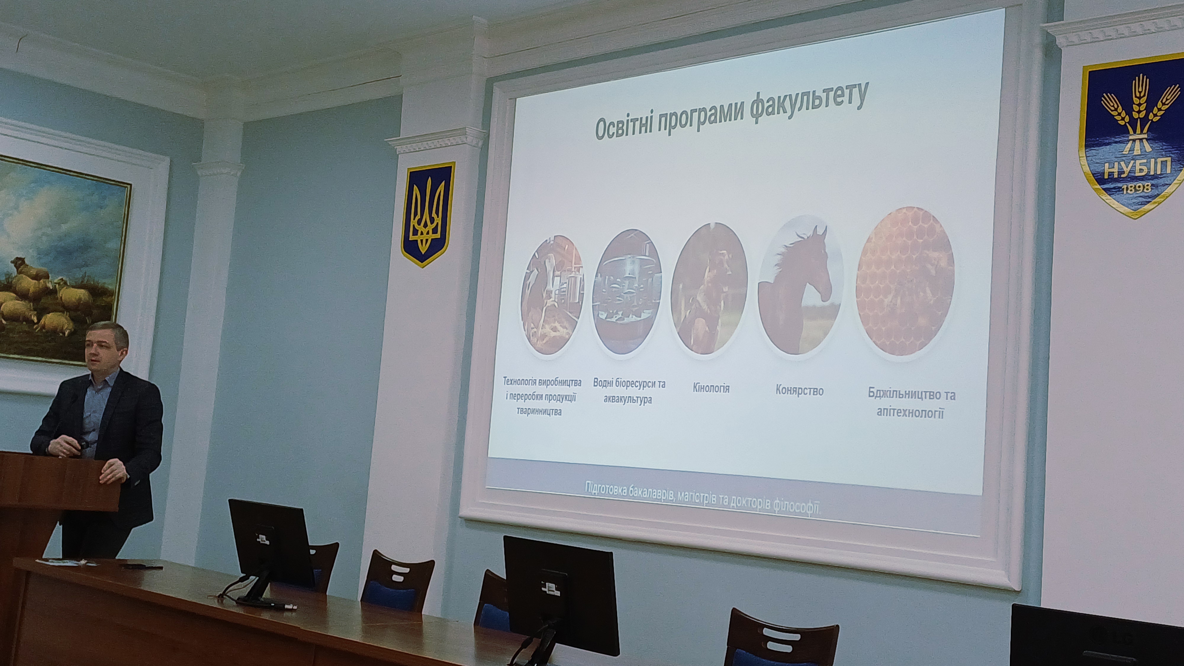 Руслан Володимирович детально зупинився на перевагах факультету, презентувавши спектр спеціальностей та сучасні освітні програми. Гості заходу дізналися, що навчальні плани розроблені з урахуванням запитів сучасного ринку праці та включають вивчення новітніх цифрових технологій в агробізнесі.