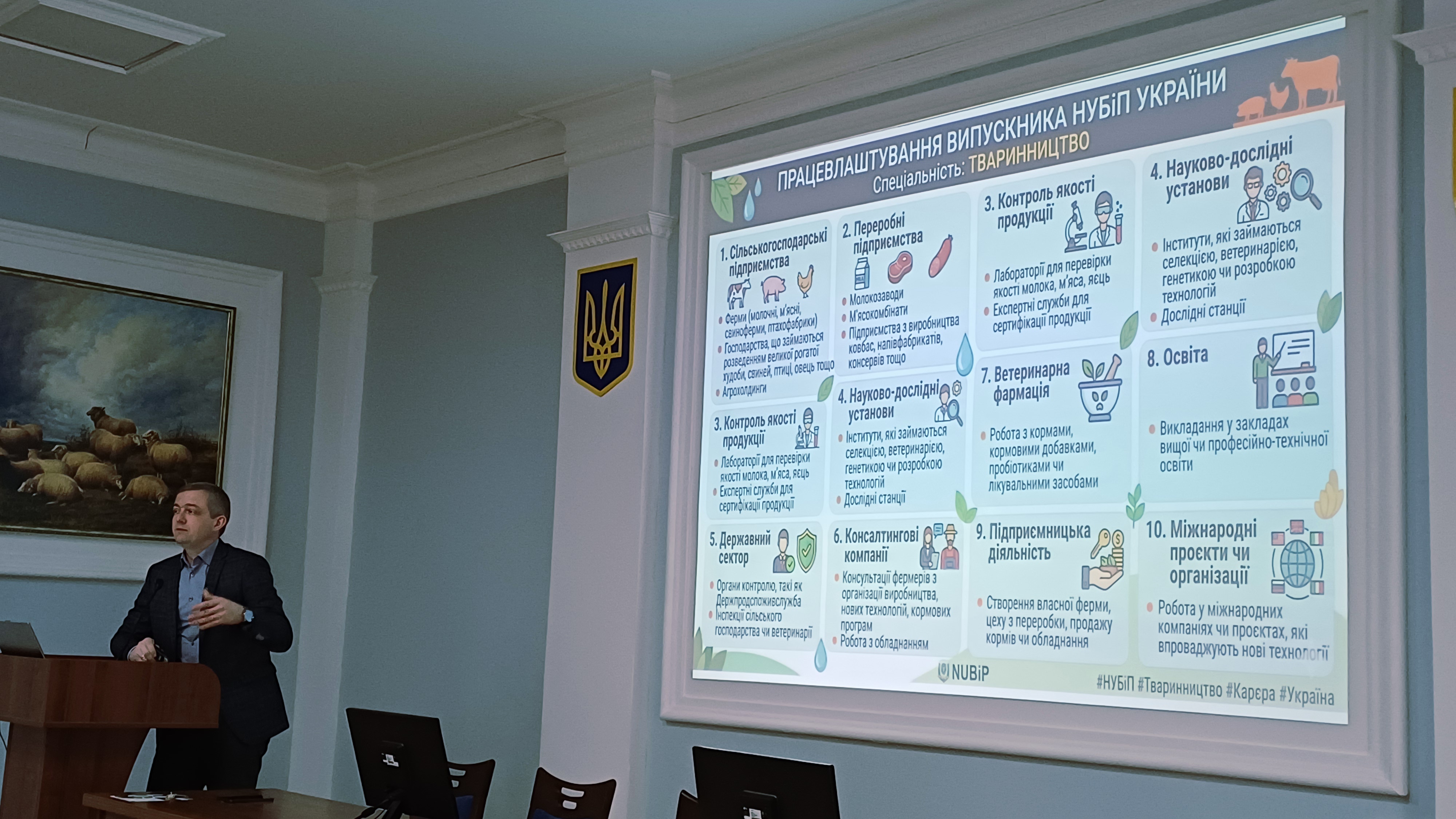 Особливу увагу під час зустрічі приділили можливостям працевлаштування. Декан наголосив, що факультет активно співпрацює з провідними аграрними холдингами, державними установами та міжнародними компаніями. Завдяки налагодженому партнерству, студенти мають змогу проходити практику на передових підприємствах, що часто стає їхнім першим офіційним місцем роботи ще до отримання диплома.