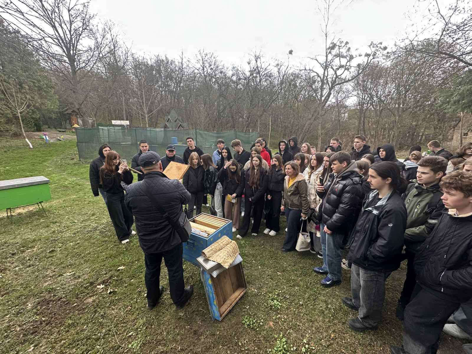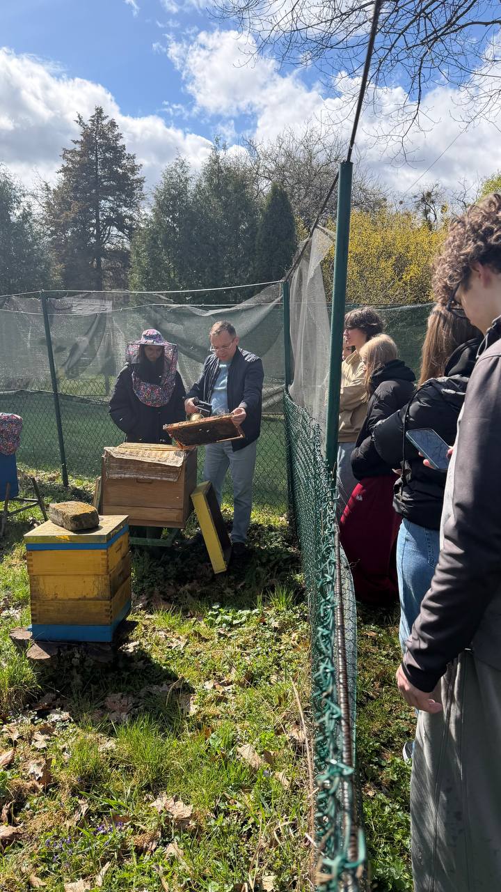 Наступним етапом стала легендарна Голосіївська навчально-дослідна пасіка. Цей справжній центр бджільництва вразив гостей своєю багатою історією та водночас сучасними підходами до роботи. Старшокласники побачили на власні очі, як фундаментальні наукові дослідження втілюються у практичне управління пасікою. Особливу увагу привернули сучасні системи моніторингу життєдіяльності бджолиних сімей, які перетворюють традиційне ремесло на високотехнологічну галузь.