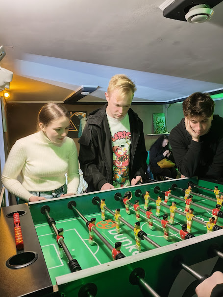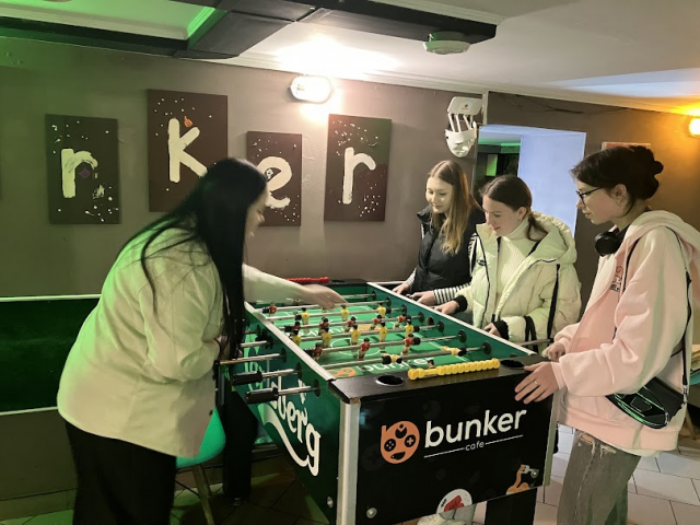 Однією з головних розваг вечора став настільний футбол, який викликав чимало емоцій та азарту серед студентів. Команди змагалися між собою, демонструючи спритність, швидкість реакції та справжній командний дух. Усі активно підтримували одне одного, створюючи атмосферу дружньої конкуренції та гарного настрою.