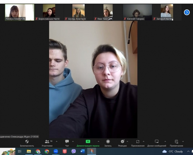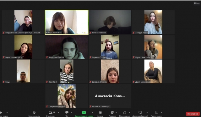 Наші першокурсники-магістри успішно складають сесію, постійно спілкуються в онлайн-форматі зі своїм наставником Анною Володимирівною Ждамаровою, разом вирішують проблемні питанння, діляться ідеями, зокрема щодо волонтерської роботи, а також планами на майбутнє про журналістську діяльність у ці складні для країни часи.