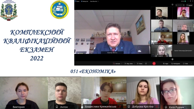 03.02.2022 року в онлайн-режимі за допомогою платформи Webex розпочала свою роботу екзаменаційна комісія у складі декана економічного факультету, д.е.н., професора Діброви Анатолія Дмитровича, завідувача кафедри організації агробізнесу, д.е.н., професора, члена-кореспондента НААН України Ільчука Миколи Максимовича, заступника декана із заочної, дистанційної та екстернатної форми навчання, к.е.н., доцента Маршалка Михайла Станіславовича, гаранта освітньо-професійної програми (ОС Бакалавр) к.е.н., доцента кафедри економіки Степасюк Людмили Михайлівни, к.е.н. доцента кафедри статистики та економічного аналізу Собченко Тетяни Степанівни, к.е.н., доцента кафедри економіки Балана Олександра Дмитровича і секретаря, старшого викладача кафедри економіки Коваленко Лариси Вікторівни для складання кваліфікаційного іспиту студентами 5-го курсу освітньо-професійної програми фахівців освітнього ступеня «Бакалавр» спеціальності «Економіка підприємства».